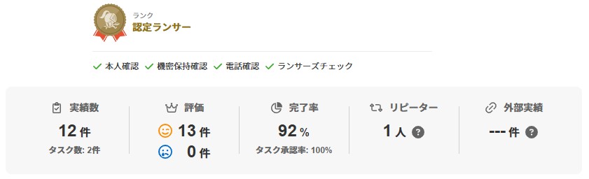 受注実績は13件、認定ランサーです。(2026年2月7日時点)